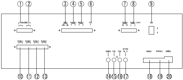 ⑦遙控輸出:與功率放大器遙控端子相連。用于應(yīng)急廣播時(shí)強(qiáng)行啟動功率放大器。