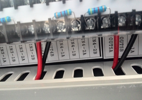 輸出模塊的音源線(xiàn)(AC120V)嚴(yán)禁與二總線(xiàn)(DC28V)混接,會(huì)造成設(shè)備燒損。
