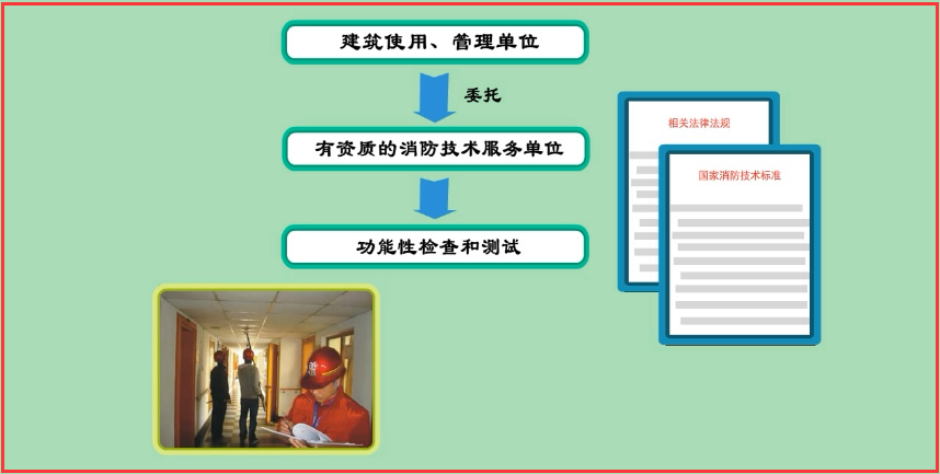 年度檢測(cè)是建筑使用、管理單位按照相關(guān)法律法規(guī)和消防技術(shù)標(biāo)準(zhǔn),每年度開(kāi)展的定期功能性檢查和測(cè)試;建筑使用、管理單位的年度檢測(cè)可以委托具有資質(zhì)的消防技術(shù)服務(wù)單位實(shí)施。年度檢測(cè)內(nèi)容和要求見(jiàn)本章第四節(jié)“系統(tǒng)的檢測(cè)與驗(yàn)收”中“系統(tǒng)檢測(cè)”的內(nèi)容。
