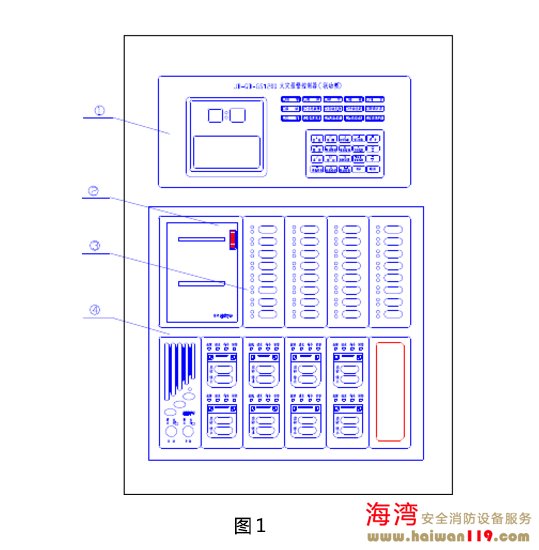 上圖說明: ①顯示操作區(qū)       ②打印機(jī)面板       ③總線制控制區(qū)     ④多線制控制區(qū)