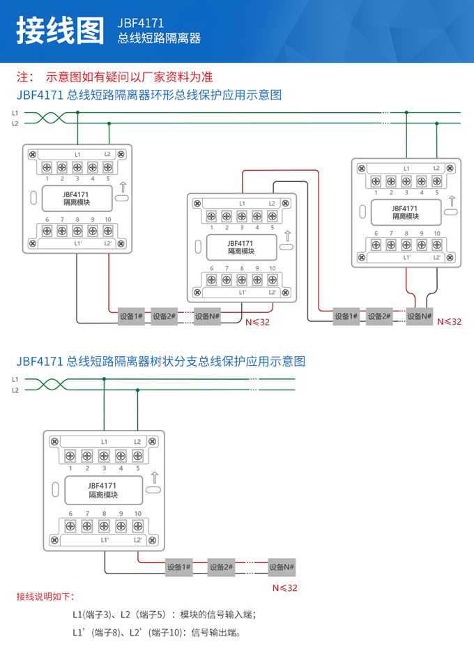 • 北大青鳥(niǎo)JBF4171隔離模塊接線圖