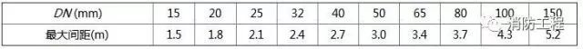 ①管道應固定牢靠,管道支、吊架的大間距應符合下表的規(guī)定。
